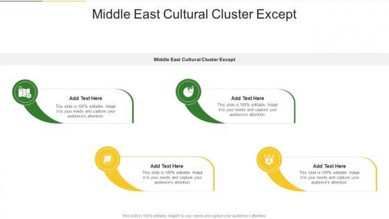Presenting our innovatively-designed set of slides titled Middle East Cultural Cluster Except In Powerpoint And Google Slides Cpb. This completely editable PowerPoint graphic exhibits Middle East Cultural Cluster Except that will help you convey the message impactfully. It can be accessed with Google Slides and is available in both standard screen and widescreen aspect ratios. Apart from this, you can download this well-structured PowerPoint template design in different formats like PDF, JPG, and PNG. So, click the download button now to gain full access to this PPT design. Our Middle East Cultural Cluster Except In Powerpoint And Google Slides Cpb are topically designed to provide an attractive backdrop to any subject. Use them to look like a presentation pro.