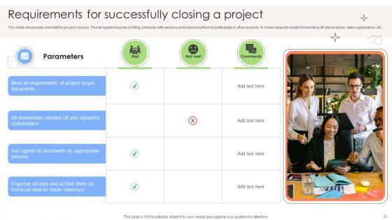 This slide showcases checklist for project closure. This template focuses on filing contracts with vendors and releasing them to participate in other projects. It covers aspects related to handing off deliverables, data organization, etc. This Executing And Monitoring Project Requirements For Successfully Closing A Project PM SS V is perfect for any presentation, be it in front of clients or colleagues. It is a versatile and stylish solution for organizing your meetings. The Executing And Monitoring Project Requirements For Successfully Closing A Project PM SS V features a modern design for your presentation meetings. The adjustable and customizable slides provide unlimited possibilities for acing up your presentation. Slidegeeks has done all the homework before launching the product for you. So, do not wait, grab the presentation templates today This slide showcases checklist for project closure. This template focuses on filing contracts with vendors and releasing them to participate in other projects. It covers aspects related to handing off deliverables, data organization, etc.