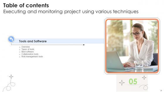 This Executing And Monitoring Project Using Various Techniques PM CD V is a primer on how to capitalize on business opportunities through planning, innovation, and market intelligence. The content-ready format of the complete deck will make your job as a decision-maker a lot easier. Use this ready-made PowerPoint Template to help you outline an extensive and legible plan to capture markets and grow your company on the right path, at an exponential pace. What is even more amazing is that this presentation is completely editable and 100 percent customizable. This Fifty Four slide complete deck helps you impress a roomful of people with your expertise in business and even presentation. Craft such a professional and appealing presentation for that amazing recall value. Download now. Our Executing And Monitoring Project Using Various Techniques PM CD V are topically designed to provide an attractive backdrop to any subject. Use them to look like a presentation pro.