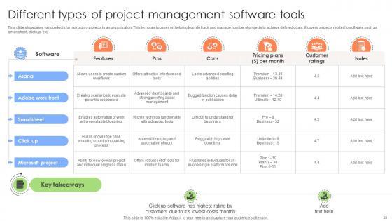 This slide showcases various tools for managing projects in an organisation. This template focuses on helping team to track and manage number of projects to achieve defined goals. It covers aspects related to software such as smartsheet, click up, etc. Present like a pro with Executing And Monitoring Project Different Types Of Project Management PM SS V. Create beautiful presentations together with your team, using our easy-to-use presentation slides. Share your ideas in real-time and make changes on the fly by downloading our templates. So whether you are in the office, on the go, or in a remote location, you can stay in sync with your team and present your ideas with confidence. With Slidegeeks presentation got a whole lot easier. Grab these presentations today. This slide showcases various tools for managing projects in an organisation. This template focuses on helping team to track and manage number of projects to achieve defined goals. It covers aspects related to software such as smartsheet, click up, etc.