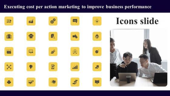 Presenting our innovatively structured Icons Slide Executing Cost Per Action Marketing To Improve Business Performance Ideas Pdf set of slides. The slides contain a hundred percent editable icons. You can replace these icons without any inconvenience. Therefore, pick this set of slides and create a striking presentation. Our Icons Slide Executing Cost Per Action Marketing To Improve Business Performance Ideas Pdf are topically designed to provide an attractive backdrop to any subject. Use them to look like a presentation pro.