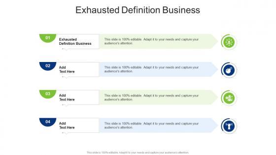 Introducing our well designed Exhausted Definition Business In Powerpoint And Google Slides Cpb. This PowerPoint design presents information on topics like Exhausted Definition Business. As it is predesigned it helps boost your confidence level. It also makes you a better presenter because of its high quality content and graphics. This PPT layout can be downloaded and used in different formats like PDF, PNG, and JPG. Not only this, it is available in both Standard Screen and Widescreen aspect ratios for your convenience. Therefore, click on the download button now to persuade and impress your audience. Our Exhausted Definition Business In Powerpoint And Google Slides Cpb are topically designed to provide an attractive backdrop to any subject. Use them to look like a presentation pro.