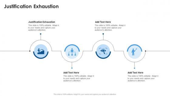 Introducing our well designed Justification Exhaustion In Powerpoint And Google Slides Cpb. This PowerPoint design presents information on topics like Justification Exhaustion. As it is predesigned it helps boost your confidence level. It also makes you a better presenter because of its high quality content and graphics. This PPT layout can be downloaded and used in different formats like PDF, PNG, and JPG. Not only this, it is available in both Standard Screen and Widescreen aspect ratios for your convenience. Therefore, click on the download button now to persuade and impress your audience. Our Justification Exhaustion In Powerpoint And Google Slides Cpb are topically designed to provide an attractive backdrop to any subject. Use them to look like a presentation pro.