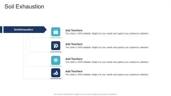 Introducing our well designed Soil Exhaustion In Powerpoint And Google Slides Cpb This PowerPoint design presents information on topics like Soil Exhaustion As it is predesigned it helps boost your confidence level. It also makes you a better presenter because of its high quality content and graphics. This PPT layout can be downloaded and used in different formats like PDF, PNG, and JPG. Not only this, it is available in both Standard Screen and Widescreen aspect ratios for your convenience. Therefore, click on the download button now to persuade and impress your audience. Our Soil Exhaustion In Powerpoint And Google Slides Cpb are topically designed to provide an attractive backdrop to any subject. Use them to look like a presentation pro.