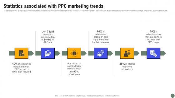 This slide provides glimpse about current statistics related to Pay Per Click marketing that help our business to understand the current market. It includes statistics about PPC marketing budget, ad blockers, audience reach, etc. Here you can discover an assortment of the finest PowerPoint and Google Slides templates. With these templates, you can create presentations for a variety of purposes while simultaneously providing your audience with an eye catching visual experience. Download Statistics Associated PPC Exhaustive Guide Of Pay Per Click Advertising Initiatives Clipart Pdf to deliver an impeccable presentation. These templates will make your job of preparing presentations much quicker, yet still, maintain a high level of quality. Slidegeeks has experienced researchers who prepare these templates and write high quality content for you. Later on, you can personalize the content by editing the Statistics Associated PPC Exhaustive Guide Of Pay Per Click Advertising Initiatives Clipart Pdf. This slide provides glimpse about current statistics related to Pay Per Click marketing that help our business to understand the current market. It includes statistics about PPC marketing budget, ad blockers, audience reach, etc.