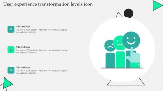 Pitch your topic with ease and precision using this User Experience Transformation Levels Icon Slides Pdf. This layout presents information on User Experience, Transformation. It is also available for immediate download and adjustment. So, changes can be made in the color, design, graphics or any other component to create a unique layout. Our User Experience Transformation Levels Icon Slides Pdf are topically designed to provide an attractive backdrop to any subject. Use them to look like a presentation pro.