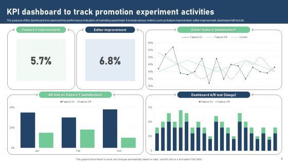 The purpose of this dashboard is to represent key performance indicators of marketing experiment. It include various metrics such as feature improvement, editor improvement, dashboard A or B test etc. Pitch your topic with ease and precision using this Kpi Dashboard To Track Promotion Experiment Activities Portrait Pdf. This layout presents information on KPI Dashboard, Track Promotion, Experiment Activities, Editor Improvement. It is also available for immediate download and adjustment. So, changes can be made in the color, design, graphics or any other component to create a unique layout. The purpose of this dashboard is to represent key performance indicators of marketing experiment. It include various metrics such as feature improvement, editor improvement, dashboard A or B test etc.