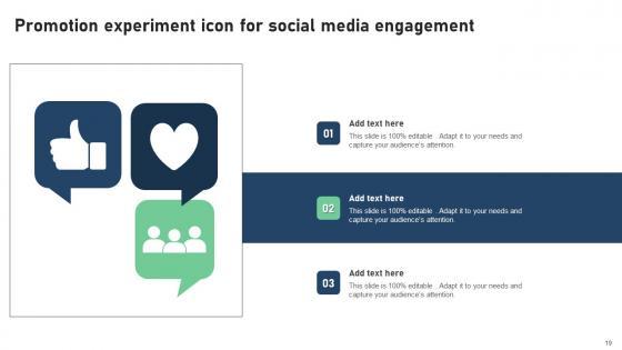 Boost your confidence and team morale with this well-structured Promotion Experiment Ppt Powerpoint Presentation Complete Deck With Slides. This prefabricated set gives a voice to your presentation because of its well-researched content and graphics. Our experts have added all the components very carefully, thus helping you deliver great presentations with a single click. Not only that, it contains a set of twenty slides that are designed using the right visuals, graphics, etc. Various topics can be discussed, and effective brainstorming sessions can be conducted using the wide variety of slides added in this complete deck. Apart from this, our PPT design contains clear instructions to help you restructure your presentations and create multiple variations. The color, format, design anything can be modified as deemed fit by the user. Not only this, it is available for immediate download. So, grab it now. Our Promotion Experiment Ppt Powerpoint Presentation Complete Deck With Slides are topically designed to provide an attractive backdrop to any subject. Use them to look like a presentation pro.