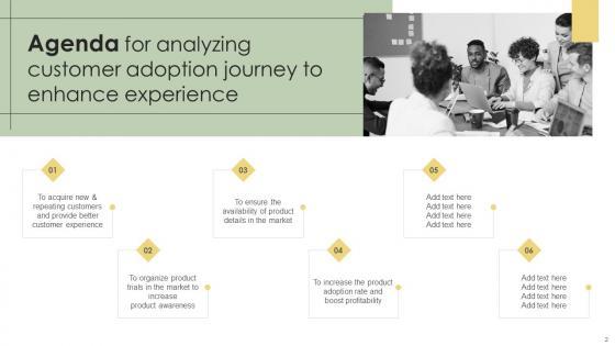 Find a pre-designed and impeccable Agenda For Analyzing Customer Adoption Journey To Enhance Experience Diagrams Pdf. The templates can ace your presentation without additional effort. You can download these easy-to-edit presentation templates to make your presentation stand out from others. So, what are you waiting for Download the template from Slidegeeks today and give a unique touch to your presentation. Our Agenda For Analyzing Customer Adoption Journey To Enhance Experience Diagrams Pdf are topically designed to provide an attractive backdrop to any subject. Use them to look like a presentation pro.