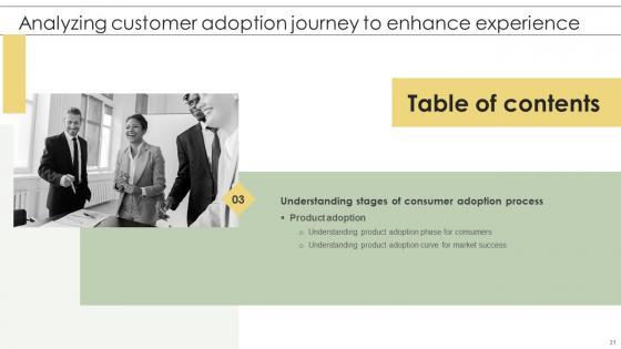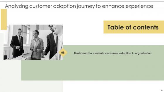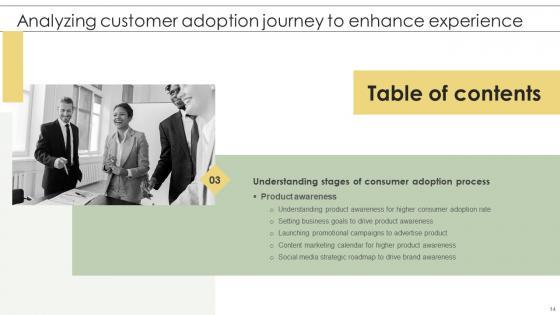 Conduct adequate research on all facets of your business and grow its in sales, profit, etc using this ready-made PPT slide. This Analyzing Customer Adoption Journey To Enhance Experience Ppt Powerpoint Presentation Complete Deck displays parameters to help you evaluate business environment from all angles. Incorporate this organized PPT Design in fivty six slides to classify your top challengers. It is a customizable slide, so use it as per your requirement. Download now to showcase your expertise in all things business, and the specialized knowledge you may have. Our Analyzing Customer Adoption Journey To Enhance Experience Ppt Powerpoint Presentation Complete Deck are topically designed to provide an attractive backdrop to any subject. Use them to look like a presentation pro.