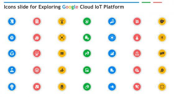 Formulating a presentation can take up a lot of effort and time, so the content and message should always be the primary focus. The visuals of the PowerPoint can enhance the presenters message, so our Icons Slide For Exploring Google Cloud IoT Platform was created to help save time. Instead of worrying about the design, the presenter can concentrate on the message while our designers work on creating the ideal templates for whatever situation is needed. Slidegeeks has experts for everything from amazing designs to valuable content, we have put everything into Icons Slide For Exploring Google Cloud IoT Platform Our Icons Slide For Exploring Google Cloud IoT Platform are topically designed to provide an attractive backdrop to any subject. Use them to look like a presentation pro.