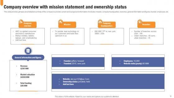 This slide provides glimpse about detailed summary of the company to provide current and background information. It includes mission, company headquarters, branches, general information and figures, founder, employees, etc. Present like a pro with Company Overview With Mission Developing Extensive Sales And Operations Strategy Elements Pdf Create beautiful presentations together with your team, using our easy to use presentation slides. Share your ideas in real time and make changes on the fly by downloading our templates. So whether you are in the office, on the go, or in a remote location, you can stay in sync with your team and present your ideas with confidence. With Slidegeeks presentation got a whole lot easier. Grab these presentations today. This slide provides glimpse about detailed summary of the company to provide current and background information. It includes mission, company headquarters, branches, general information and figures, founder, employees, etc.