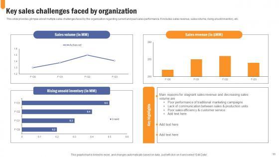 This slide provides glimpse about multiple sales challenges faced by the organization regarding current and past sales performance. It includes sales revenue, sales volume, rising unsold inventory, etc. Welcome to our selection of the Key Sales Challenges Faced Developing Extensive Sales And Operations Strategy Download Pdf. These are designed to help you showcase your creativity and bring your sphere to life. Planning and Innovation are essential for any business that is just starting out. This collection contains the designs that you need for your everyday presentations. All of our PowerPoints are 100 percent editable, so you can customize them to suit your needs. This multi purpose template can be used in various situations. Grab these presentation templates today. This slide provides glimpse about multiple sales challenges faced by the organization regarding current and past sales performance. It includes sales revenue, sales volume, rising unsold inventory, etc.