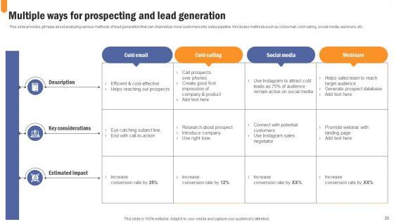 This slide provides glimpse about analyzing various methods of lead generation that can channelize more customers into sales pipeline. It includes methods such as cold email, cold calling, social media, webinars, etc. Are you searching for a Multiple Ways For Prospecting And Lead Developing Extensive Sales And Operations Strategy Summary Pdf that is uncluttered, straightforward, and original Its easy to edit, and you can change the colors to suit your personal or business branding. For a presentation that expresses how much effort you have put in, this template is ideal With all of its features, including tables, diagrams, statistics, and lists, its perfect for a business plan presentation. Make your ideas more appealing with these professional slides. Download Multiple Ways For Prospecting And Lead Developing Extensive Sales And Operations Strategy Summary Pdf from Slidegeeks today. This slide provides glimpse about analyzing various methods of lead generation that can channelize more customers into sales pipeline. It includes methods such as cold email, cold calling, social media, webinars, etc.