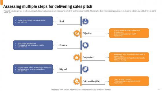 This slide provides glimpse about various steps that can help business to deliver sales pitch effectively and increase probability of finalizing the deal. It includes steps such as hook, objective, problem, our product, why us, call to action, etc. Do you have to make sure that everyone on your team knows about any specific topic I yes, then you should give Assessing Multiple Steps Developing Extensive Sales And Operations Strategy Sample Pdf a try. Our experts have put a lot of knowledge and effort into creating this impeccable Assessing Multiple Steps Developing Extensive Sales And Operations Strategy Sample Pdf. You can use this template for your upcoming presentations, as the slides are perfect to represent even the tiniest detail. You can download these templates from the Slidegeeks website and these are easy to edit. So grab these today. This slide provides glimpse about various steps that can help business to deliver sales pitch effectively and increase probability of finalizing the deal. It includes steps such as hook, objective, problem, our product, why us, call to action, etc.