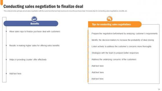This slide provides glimpse about sales negotiation with the customers that can help business to close the purchase deal. It includes tips for conducting sales negotiations, benefits, etc. Do you have an important presentation coming up Are you looking for something that will make your presentation stand out from the rest Look no further than Conducting Sales Negotiation Developing Extensive Sales And Operations Strategy Structure Pdf. With our professional designs, you can trust that your presentation will pop and make delivering it a smooth process. And with Slidegeeks, you can trust that your presentation will be unique and memorable. So why wait Grab Conducting Sales Negotiation Developing Extensive Sales And Operations Strategy Structure Pdf today and make your presentation stand out from the rest. This slide provides glimpse about sales negotiation with the customers that can help business to close the purchase deal. It includes tips for conducting sales negotiations, benefits, etc.
