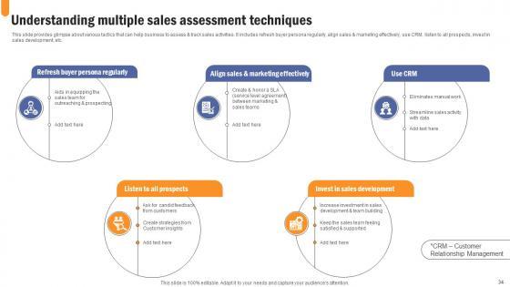 This slide provides glimpse about various tactics that can help business to assess and track sales activities. It includes refresh buyer persona regularly, align sales and marketing effectively, use CRM, listen to all prospects, invest in sales development, etc. Do you have to make sure that everyone on your team knows about any specific topic I yes, then you should give Understanding Multiple Sales Assessment Developing Extensive Sales And Operations Strategy Brochure Pdf a try. Our experts have put a lot of knowledge and effort into creating this impeccable Understanding Multiple Sales Assessment Developing Extensive Sales And Operations Strategy Brochure Pdf. You can use this template for your upcoming presentations, as the slides are perfect to represent even the tiniest detail. You can download these templates from the Slidegeeks website and these are easy to edit. So grab these today. This slide provides glimpse about various tactics that can help business to assess and track sales activities. It includes refresh buyer persona regularly, align sales and marketing effectively, use CRM, listen to all prospects, invest in sales development, etc.