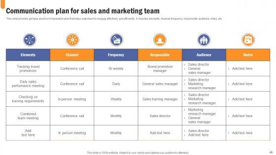 This slide provides glimpse about communication plan that helps sales team to engage effectively and efficiently. It includes elements, channel, frequency, responsible, audience, notes, etc. From laying roadmaps to briefing everything in detail, our templates are perfect for you. You can set the stage with your presentation slides. All you have to do is download these easy to edit and customizable templates. Communication Plan For Sales Developing Extensive Sales And Operations Strategy Professional Pdf will help you deliver an outstanding performance that everyone would remember and praise you for. Do download this presentation today. This slide provides glimpse about communication plan that helps sales team to engage effectively and efficiently. It includes elements, channel, frequency, responsible, audience, notes, etc.