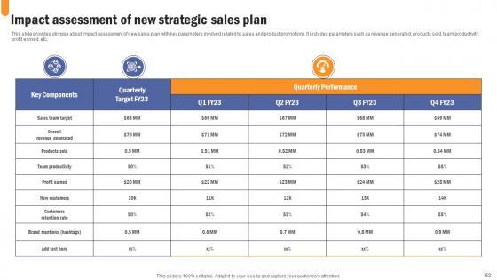 This slide provides glimpse about impact assessment of new sales plan with key parameters involved related to sales and product promotions. It includes parameters such as revenue generated, products sold, team productivity, profit earned, etc. This Impact Assessment Of New Strategic Developing Extensive Sales And Operations Strategy Portrait Pdf is perfect for any presentation, be it in front of clients or colleagues. It is a versatile and stylish solution for organizing your meetings. The product features a modern design for your presentation meetings. The adjustable and customizable slides provide unlimited possibilities for acing up your presentation. Slidegeeks has done all the homework before launching the product for you. So, do not wait, grab the presentation templates today This slide provides glimpse about impact assessment of new sales plan with key parameters involved related to sales and product promotions. It includes parameters such as revenue generated, products sold, team productivity, profit earned, etc.
