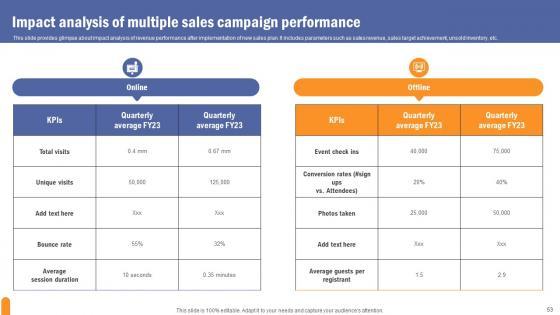 This slide provides glimpse about impact analysis of revenue performance after implementation of new sales plan. It includes parameters such as sales revenue, sales target achievement, unsold inventory, etc. This modern and well arranged Impact Analysis Of Multiple Sales Developing Extensive Sales And Operations Strategy Elements Pdf provides lots of creative possibilities. It is very simple to customize and edit with the Powerpoint Software. Just drag and drop your pictures into the shapes. All facets of this template can be edited with Powerpoint no extra software is necessary. Add your own material, put your images in the places assigned for them, adjust the colors, and then you can show your slides to the world, with an animated slide included. This slide provides glimpse about impact analysis of revenue performance after implementation of new sales plan. It includes parameters such as sales revenue, sales target achievement, unsold inventory, etc.