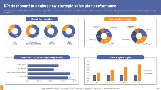 This slide showcases the kpis that would help a business organization to evaluate improvements in the new strategic sales plan. It includes kpis such as market share by region, plan sales vs. Actual sales by month, gross margin by region, etc. Explore a selection of the finest KPI Dashboard To Analyze Developing Extensive Sales And Operations Strategy Slides Pdf here. With a plethora of professionally designed and pre made slide templates, you can quickly and easily find the right one for your upcoming presentation. You can use our KPI Dashboard To Analyze Developing Extensive Sales And Operations Strategy Slides Pdf to effectively convey your message to a wider audience. Slidegeeks has done a lot of research before preparing these presentation templates. The content can be personalized and the slides are highly editable. Grab templates today from Slidegeeks. This slide showcases the kpis that would help a business organization to evaluate improvements in the new strategic sales plan. It includes kpis such as market share by region, plan sales vs. Actual sales by month, gross margin by region, etc.