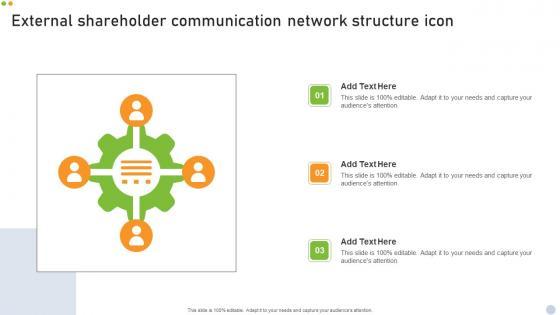 Showcasing this set of slides titled External Shareholder Communication Network Structure Icon Template Pdf. The topics addressed in these templates are External Shareholder, Communication Network, Structure Icon. All the content presented in this PPT design is completely editable. Download it and make adjustments in color, background, font etc. as per your unique business setting. Our External Shareholder Communication Network Structure Icon Template Pdf are topically designed to provide an attractive backdrop to any subject. Use them to look like a presentation pro.