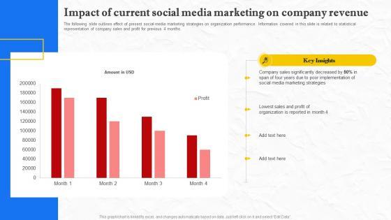 The following slide outlines effect of present social media marketing strategies on organization performance. Information covered in this slide is related to statistical representation of company sales and profit for previous 4 months. Here you can discover an assortment of the finest PowerPoint and Google Slides templates. With these templates, you can create presentations for a variety of purposes while simultaneously providing your audience with an eye-catching visual experience. Download Facebook Marketing Techniques Impact Of Current Social Media Marketing Strategy SS V to deliver an impeccable presentation. These templates will make your job of preparing presentations much quicker, yet still, maintain a high level of quality. Slidegeeks has experienced researchers who prepare these templates and write high-quality content for you. Later on, you can personalize the content by editing the Facebook Marketing Techniques Impact Of Current Social Media Marketing Strategy SS V. The following slide outlines effect of present social media marketing strategies on organization performance. Information covered in this slide is related to statistical representation of company sales and profit for previous 4 months.