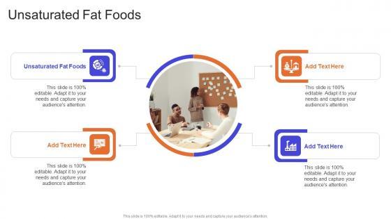 Presenting our innovatively designed set of slides titled Unsaturated Fat Foods In Powerpoint And Google Slides Cpb. This completely editable PowerPoint graphic exhibits Unsaturated Fat Foods that will help you convey the message impactfully. It can be accessed with Google Slides and is available in both standard screen and widescreen aspect ratios. Apart from this, you can download this well structured PowerPoint template design in different formats like PDF, JPG, and PNG. So, click the download button now to gain full access to this PPT design. Our Unsaturated Fat Foods In Powerpoint And Google Slides Cpb are topically designed to provide an attractive backdrop to any subject. Use them to look like a presentation pro.