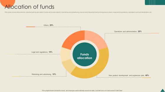 This slide shows where funds collected will be allocated. Funds will be allocated to marketing and advertising, new product development and expansion plans, legal and regulations, operations and administration, etc. The Allocation Of Funds Financial Analytics Platform Investor Elevator Pitch Deck is a compilation of the most recent design trends as a series of slides. It is suitable for any subject or industry presentation, containing attractive visuals and photo spots for businesses to clearly express their messages. This template contains a variety of slides for the user to input data, such as structures to contrast two elements, bullet points, and slides for written information. Slidegeeks is prepared to create an impression. This slide shows where funds collected will be allocated. Funds will be allocated to marketing and advertising, new product development and expansion plans, legal and regulations, operations and administration, etc.