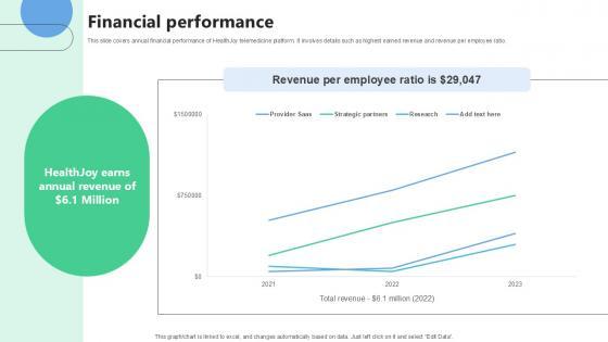 This slide covers annual financial performance of HealthJoy telemedicine platform. It involves details such as highest earned revenue and revenue per employee ratio. Do you know about Slidesgeeks Financial Performance Medical Benefits Navigation Platform Pitch Deck Ppt Presentation These are perfect for delivering any kind od presentation. Using it, create PowerPoint presentations that communicate your ideas and engage audiences. Save time and effort by using our pre-designed presentation templates that are perfect for a wide range of topic. Our vast selection of designs covers a range of styles, from creative to business, and are all highly customizable and easy to edit. Download as a PowerPoint template or use them as Google Slides themes. This slide covers annual financial performance of HealthJoy telemedicine platform. It involves details such as highest earned revenue and revenue per employee ratio.