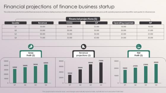 This slide showcases the forecasted financial analysis of a finance startup business. It outlines projections for revenue, cost of goods sold, gross profit, operating expenses and net profit for each quarter of a financial year. Do you have an important presentation coming up Are you looking for something that will make your presentation stand out from the rest Look no further than Financial Projections Of Finance Business Startup Penetrating Markets With Financial Strategy SS V. With our professional designs, you can trust that your presentation will pop and make delivering it a smooth process. And with Slidegeeks, you can trust that your presentation will be unique and memorable. So why wait Grab Financial Projections Of Finance Business Startup Penetrating Markets With Financial Strategy SS V today and make your presentation stand out from the rest This slide showcases the forecasted financial analysis of a finance startup business. It outlines projections for revenue, cost of goods sold, gross profit, operating expenses and net profit for each quarter of a financial year.
