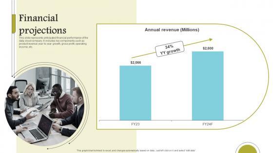 This slide represents anticipated financial performance of the data cloud company. It includes key components such as product revenue year to year growth, gross profit, operating income, etc. Slidegeeks is here to make your presentations a breeze with Financial Projections Cloud Data Computing Company Fund Raising Formats PDF With our easy-to-use and customizable templates, you can focus on delivering your ideas rather than worrying about formatting. With a variety of designs to choose from, you are sure to find one that suits your needs. And with animations and unique photos, illustrations, and fonts, you can make your presentation pop. So whether you are giving a sales pitch or presenting to the board, make sure to check out Slidegeeks first This slide represents anticipated financial performance of the data cloud company. It includes key components such as product revenue year to year growth, gross profit, operating income, etc.