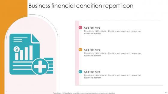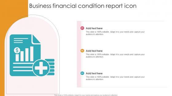 Showcasing this set of slides titled Business Financial Condition Report Icon Elements Pdf. The topics addressed in these templates are Business Financial, Condition Report Icon. All the content presented in this PPT design is completely editable. Download it and make adjustments in color, background, font etc. as per your unique business setting. Our Business Financial Condition Report Icon Elements Pdf are topically designed to provide an attractive backdrop to any subject. Use them to look like a presentation pro.