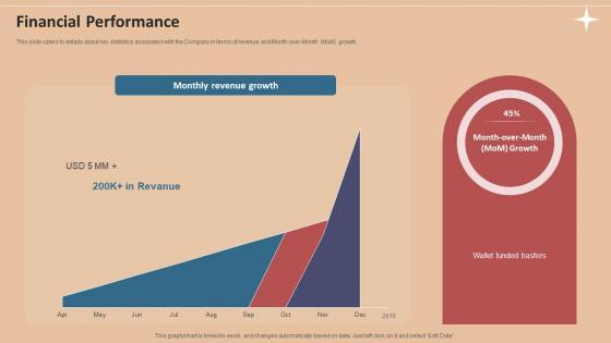 This slide caters to details about key statistics associated with the Company in terms of revenue and Month-over-Month MoM growth. Present like a pro with Financial Performance Foreign Exchange Company Investor Funding Elevator Pitch Deck. Create beautiful presentations together with your team, using our easy-to-use presentation slides. Share your ideas in real-time and make changes on the fly by downloading our templates. So whether you are in the office, on the go, or in a remote location, you can stay in sync with your team and present your ideas with confidence. With Slidegeeks presentation got a whole lot easier. Grab these presentations today. This slide caters to details about key statistics associated with the Company in terms of revenue and Month-over-Month MoM growth.