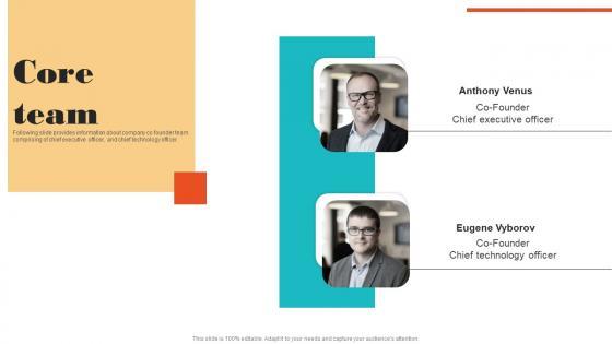 This slide caters to details about key members associated with Companys founding team along with their past work experiences. Do you have to make sure that everyone on your team knows about any specific topic I yes, then you should give Core Team Financial Management Software Capital Raising Deck Formats Pdf a try. Our experts have put a lot of knowledge and effort into creating this impeccable Core Team Financial Management Software Capital Raising Deck Formats Pdf. You can use this template for your upcoming presentations, as the slides are perfect to represent even the tiniest detail. You can download these templates from the Slidegeeks website and these are easy to edit. So grab these today. This slide caters to details about key members associated with Companys founding team along with their past work experiences.