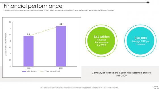 This slide highlights company revenue current performance. It covers details such as revenue performance, ARR per customers, and total number of users of company. Present like a pro with Financial Performance Competitive Landscape Analysis Platform Pitch Deck. Create beautiful presentations together with your team, using our easy-to-use presentation slides. Share your ideas in real-time and make changes on the fly by downloading our templates. So whether you are in the office, on the go, or in a remote location, you can stay in sync with your team and present your ideas with confidence. With Slidegeeks presentation got a whole lot easier. Grab these presentations today. This slide highlights company revenue current performance. It covers details such as revenue performance, ARR per customers, and total number of users of company.