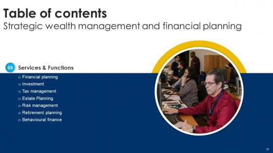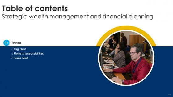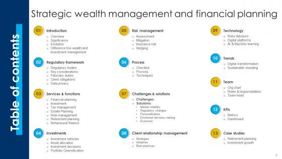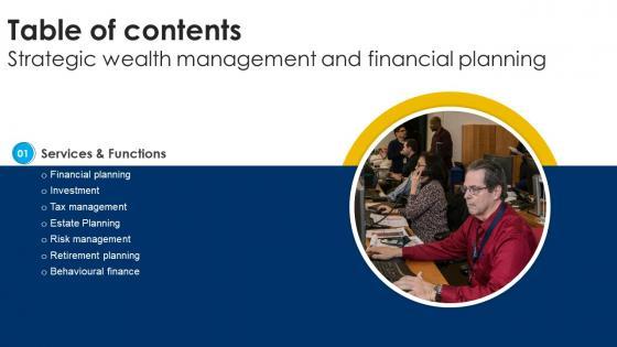 Are you in need of a template that can accommodate all of your creative concepts This one is crafted professionally and can be altered to fit any style. Use it with Google Slides or PowerPoint. Include striking photographs, symbols, depictions, and other visuals. Fill, move around, or remove text boxes as desired. Test out color palettes and font mixtures. Edit and save your work, or work with colleagues. Download Table Of Contents For Strategic Wealth Management And Financial Planning Fin SS V and observe how to make your presentation outstanding. Give an impeccable presentation to your group and make your presentation unforgettable. Our Table Of Contents For Strategic Wealth Management And Financial Planning Fin SS V are topically designed to provide an attractive backdrop to any subject. Use them to look like a presentation pro.