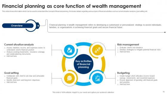 This slide shows information which can be used to understand the concept of financial planning. It includes details regarding various types of financial activities such as current situation analysis, goal setting, etc. If your project calls for a presentation, then Slidegeeks is your go-to partner because we have professionally designed, easy-to-edit templates that are perfect for any presentation. After downloading, you can easily edit Financial Planning As Core Function Of Strategic Wealth Management And Financial Fin SS V and make the changes accordingly. You can rearrange slides or fill them with different images. Check out all the handy templates This slide shows information which can be used to understand the concept of financial planning. It includes details regarding various types of financial activities such as current situation analysis, goal setting, etc.