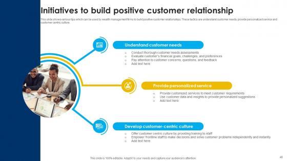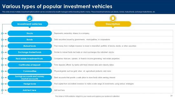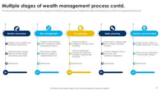 This seventy four slide Strategic Wealth Management And Financial Planning Fin CD V is your content ready tool to impress the stakeholders with your business planning and its manner of execution. Showcase your ideas and how you plan to make them real in detail with this PPT Template Bundle. The slides have the conceptual bandwidth to present the crucial aspects of your plan, such as funding, marketing, resource allocation, timeline, roadmap, and more. When you present your plans with this PPT Layout, the stakeholders are sure to come on board because you will be able to present a succinct, thought-out, winning project. Download this Complete Deck now to take control into your hands. The 100 percent customizable offer is just too good to be resisted. Our Strategic Wealth Management And Financial Planning Fin CD V are topically designed to provide an attractive backdrop to any subject. Use them to look like a presentation pro.