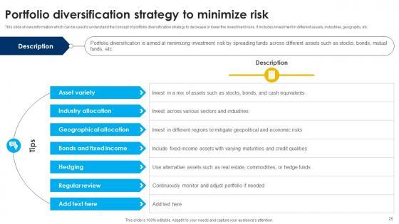 This slide represents the strategies to be adopted by enterprises to evaluate and manage financial risks associated with financial products and instruments. It includes details related to financial risk management techniques such as diversify investments etc. Crafting an eye catching presentation has never been more straightforward. Let your presentation shine with this tasteful yet straightforward Strategic Risk Management And Mitigation Plan Effective Techniques To Manage Financial Risks Themes PDF template. It offers a minimalistic and classy look that is great for making a statement. The colors have been employed intelligently to add a bit of playfulness while still remaining professional. Construct the ideal Strategic Risk Management And Mitigation Plan Effective Techniques To Manage Financial Risks Themes PDF that effortlessly grabs the attention of your audience Begin now and be certain to wow your customers.