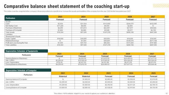 This Coaching Business Plan Financial Projections Ppt Powerpoint Presentation Complete Deck is a primer on how to capitalize on business opportunities through planning, innovation, and market intelligence. The content-ready format of the complete deck will make your job as a decision-maker a lot easier. Use this ready-made PowerPoint Template to help you outline an extensive and legible plan to capture markets and grow your company on the right path, at an exponential pace. What is even more amazing is that this presentation is completely editable and 100 percent customizable. This fourteen slide complete deck helps you impress a roomful of people with your expertise in business and even presentation. Craft such a professional and appealing presentation for that amazing recall value. Download now. Our Coaching Business Plan Financial Projections Ppt Powerpoint Presentation Complete Deck are topically designed to provide an attractive backdrop to any subject. Use them to look like a presentation pro.