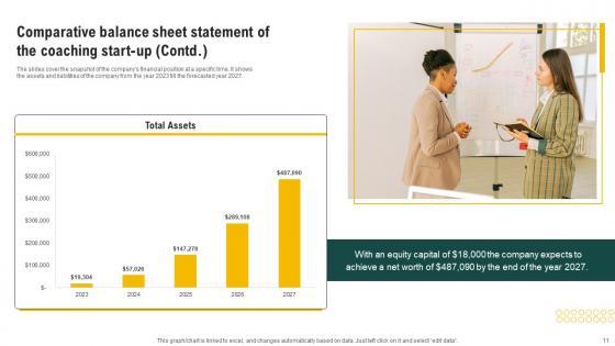 The slides cover the snapshot of the companys financial position at a specific time. It shows the assets and liabilities of the company from the year 2023 till the forecasted year 2027. Boost your pitch with our creative Comparative Balance Sheet Statement Coaching Business Plan Financial Projections Demonstration Pdf. Deliver an awe-inspiring pitch that will mesmerize everyone. Using these presentation templates you will surely catch everyones attention. You can browse the ppts collection on our website. We have researchers who are experts at creating the right content for the templates. So you do not have to invest time in any additional work. Just grab the template now and use them. The slides cover the snapshot of the companys financial position at a specific time. It shows the assets and liabilities of the company from the year 2023 till the forecasted year 2027.