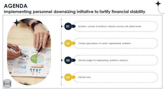 Find a pre-designed and impeccable Agenda Implementing Personnel Downsizing Initiative To Fortify Financial Stability. The templates can ace your presentation without additional effort. You can download these easy-to-edit presentation templates to make your presentation stand out from others. So, what are you waiting for Download the template from Slidegeeks today and give a unique touch to your presentation. Our Agenda Implementing Personnel Downsizing Initiative To Fortify Financial Stability are topically designed to provide an attractive backdrop to any subject. Use them to look like a presentation pro.