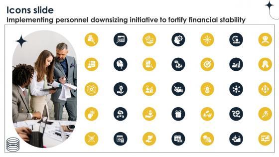 Download our innovative and attention grabbing Icons Slide Implementing Personnel Downsizing Initiative To Fortify Financial Stability template. The set of slides exhibit completely customizable icons. These icons can be incorporated into any business presentation. So download it immediately to clearly communicate with your clientele. Our Icons Slide Implementing Personnel Downsizing Initiative To Fortify Financial Stability are topically designed to provide an attractive backdrop to any subject. Use them to look like a presentation pro.