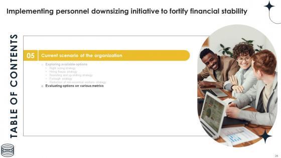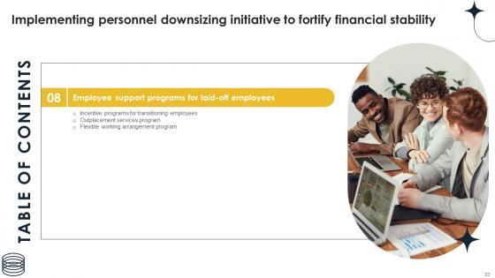 Here you can discover an assortment of the finest PowerPoint and Google Slides templates. With these templates, you can create presentations for a variety of purposes while simultaneously providing your audience with an eye-catching visual experience. Download Table Of Contents Implementing Personnel Downsizing Initiative To Fortify Financial Stability to deliver an impeccable presentation. These templates will make your job of preparing presentations much quicker, yet still, maintain a high level of quality. Slidegeeks has experienced researchers who prepare these templates and write high-quality content for you. Later on, you can personalize the content by editing the Table Of Contents Implementing Personnel Downsizing Initiative To Fortify Financial Stability. Our Table Of Contents Implementing Personnel Downsizing Initiative To Fortify Financial Stability are topically designed to provide an attractive backdrop to any subject. Use them to look like a presentation pro.