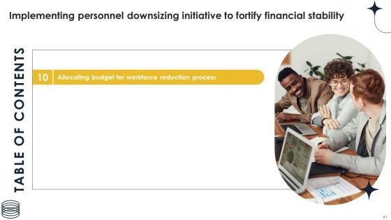 This Implementing Personnel Downsizing Initiative To Fortify Financial Stability Complete Deck is designed to help you retain your audiences attention. This content-ready PowerPoint Template enables you to take your audience on a journey and share information in a way that is easier to recall. It helps you highlight the crucial parts of your work so that the audience does not get saddled with information download. This fifty six-slide PPT Deck comes prepared with the graphs and charts you could need to showcase your information through visuals. You only need to enter your own data in them. Download this editable PowerPoint Theme and walk into that meeting with confidence. Our Implementing Personnel Downsizing Initiative To Fortify Financial Stability Complete Deck are topically designed to provide an attractive backdrop to any subject. Use them to look like a presentation pro.