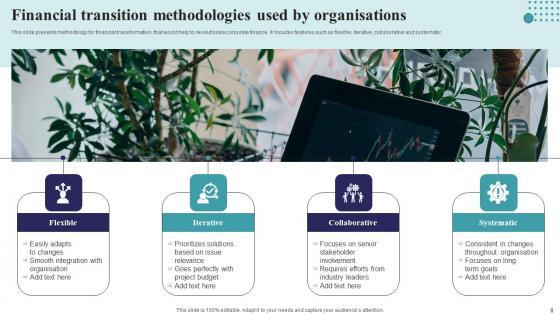 This slide presents methodology for financial transformation, that would help to revolutionize corporate finance. It incudes features such as flexible, iterative, collaborative and systematic Showcasing this set of slides titled Financial Transition Methodologies Used By Organisations Infographics Pdf The topics addressed in these templates are Flexible, Iterative, Collaborative, Systematic All the content presented in this PPT design is completely editable. Download it and make adjustments in color, background, font etc. as per your unique business setting. This slide presents methodology for financial transformation, that would help to revolutionize corporate finance. It incudes features such as flexible, iterative, collaborative and systematic