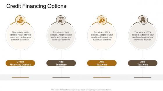Introducing our well-designed Credit Financing Options In Powerpoint And Google Slides Cpb. This PowerPoint design presents information on topics like Credit Financing Options. As it is predesigned it helps boost your confidence level. It also makes you a better presenter because of its high-quality content and graphics. This PPT layout can be downloaded and used in different formats like PDF, PNG, and JPG. Not only this, it is available in both Standard Screen and Widescreen aspect ratios for your convenience. Therefore, click on the download button now to persuade and impress your audience. Our Credit Financing Options In Powerpoint And Google Slides Cpb are topically designed to provide an attractive backdrop to any subject. Use them to look like a presentation pro.