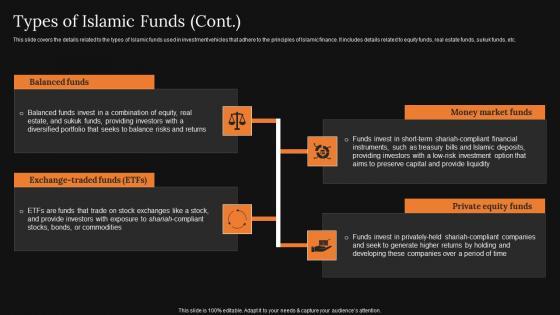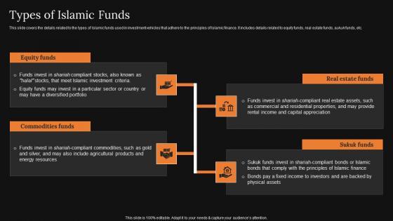 This slide covers the details related to the types of Islamic funds used in investment vehicles that adhere to the principles of Islamic finance. It includes details related to equity funds, real estate funds, sukuk funds, etc. Explore a selection of the finest Types Of Islamic Funds A Detailed Knowledge Of Islamic Finance Formats Pdf here. With a plethora of professionally designed and pre made slide templates, you can quickly and easily find the right one for your upcoming presentation. You can use our Types Of Islamic Funds A Detailed Knowledge Of Islamic Finance Formats Pdf to effectively convey your message to a wider audience. Slidegeeks has done a lot of research before preparing these presentation templates. The content can be personalized and the slides are highly editable. Grab templates today from Slidegeeks. This slide covers the details related to the types of Islamic funds used in investment vehicles that adhere to the principles of Islamic finance. It includes details related to equity funds, real estate funds, sukuk funds, etc.