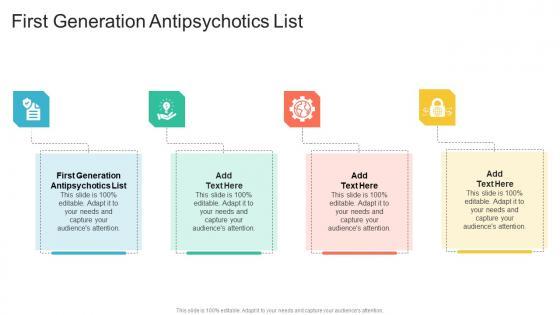 Presenting our innovatively-designed set of slides titled First Generation Antipsychotics List In Powerpoint And Google Slides Cpb. This completely editable PowerPoint graphic exhibits First Generation Antipsychotics List that will help you convey the message impactfully. It can be accessed with Google Slides and is available in both standard screen and widescreen aspect ratios. Apart from this, you can download this well-structured PowerPoint template design in different formats like PDF, JPG, and PNG. So, click the download button now to gain full access to this PPT design. Our First Generation Antipsychotics List In Powerpoint And Google Slides Cpb are topically designed to provide an attractive backdrop to any subject. Use them to look like a presentation pro.